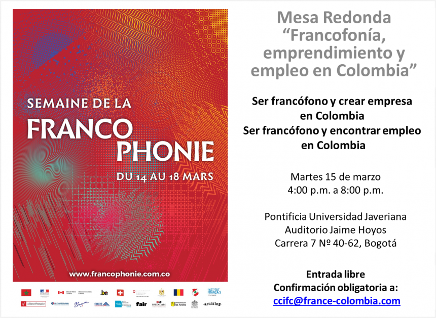 En el marco de la Semana de la Francofonía, los invitamos a la Mesa Redonda "Francofonía, emprendimiento y empleo en Colombia"